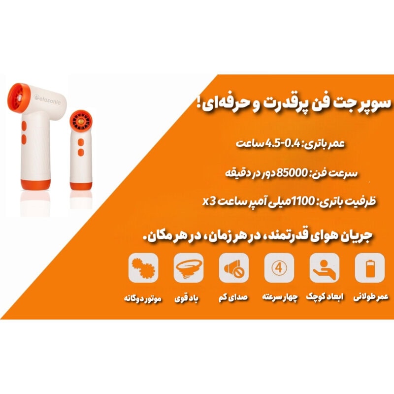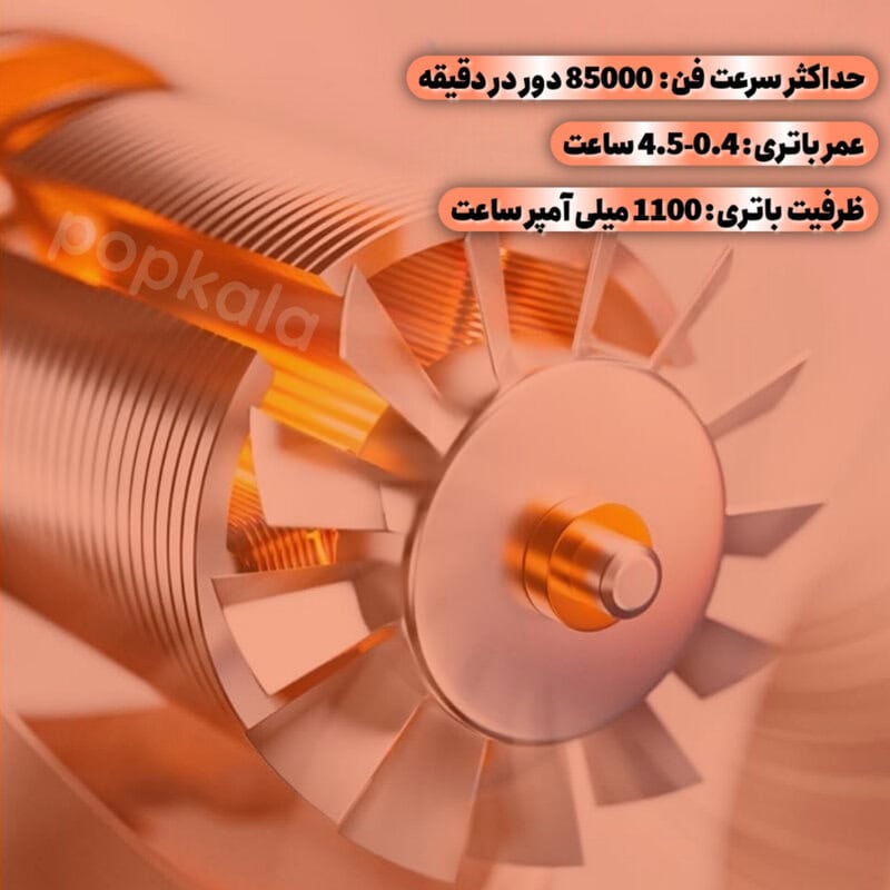 - قدرت بالا: جت فن دستی با سرعت بالای توربو (85000 دور در دقیقه) جریان هوای قوی ایجاد می کند.