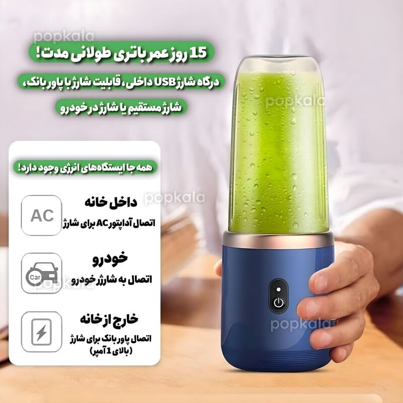 - موتور قدرتمند و فناوری پالس: این مخلوط کن شارژی مجهز به موتور 40 واتی با فناوری پالس، به شما این امکان را می دهد تا با یک دستگاه، انواع میلک شیک ها و اسموتی ها را به آسانی تهیه کنید. این ویژگی، خلاقیت شما را در تهیه نوشیدنی های متنوع در هر زمان و مکان گسترش می دهد.
