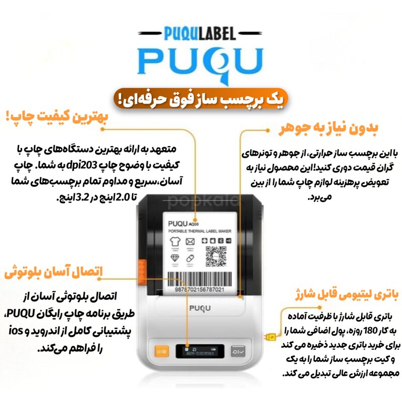 •  با پرینتر لیبل زن PUQU AQ00، دنیای لیبل های حرفه ای را در دستان خود تجربه کنید!