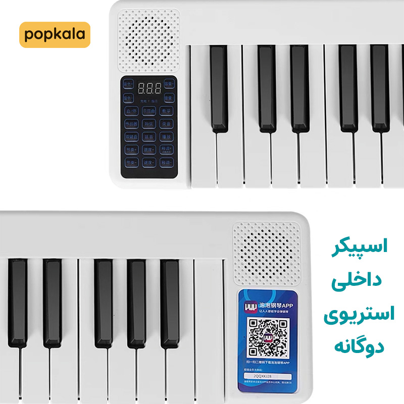 پیانو تاشو قابل حمل 88 Keys: یک پیانوی تاشو با ۱۲۸ ریتم و صدای مختلف، امکان استفاده از آکورد، تمپو، مترونوم، ترانسکریپسیون، میکروفن، ورودی و خروجی صدا و قابلیت تشخیص فشار در ۸ سطح مختلف!