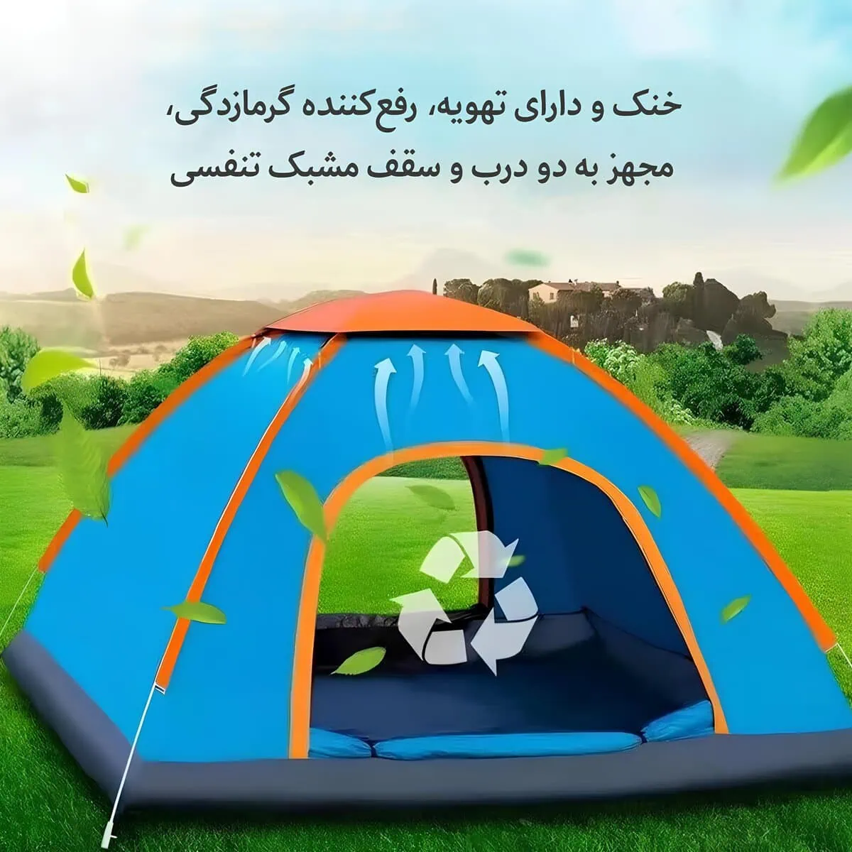 چادر مسافرتی ۴ نفره با نصب ۲ ثانیه ای، پارچه ضدآب، وزن سبک و تهویه عالی؛ مناسب کمپینگ، سفر و طبیعت گردی. انتخابی مطمئن برای خانواده و دوستان.