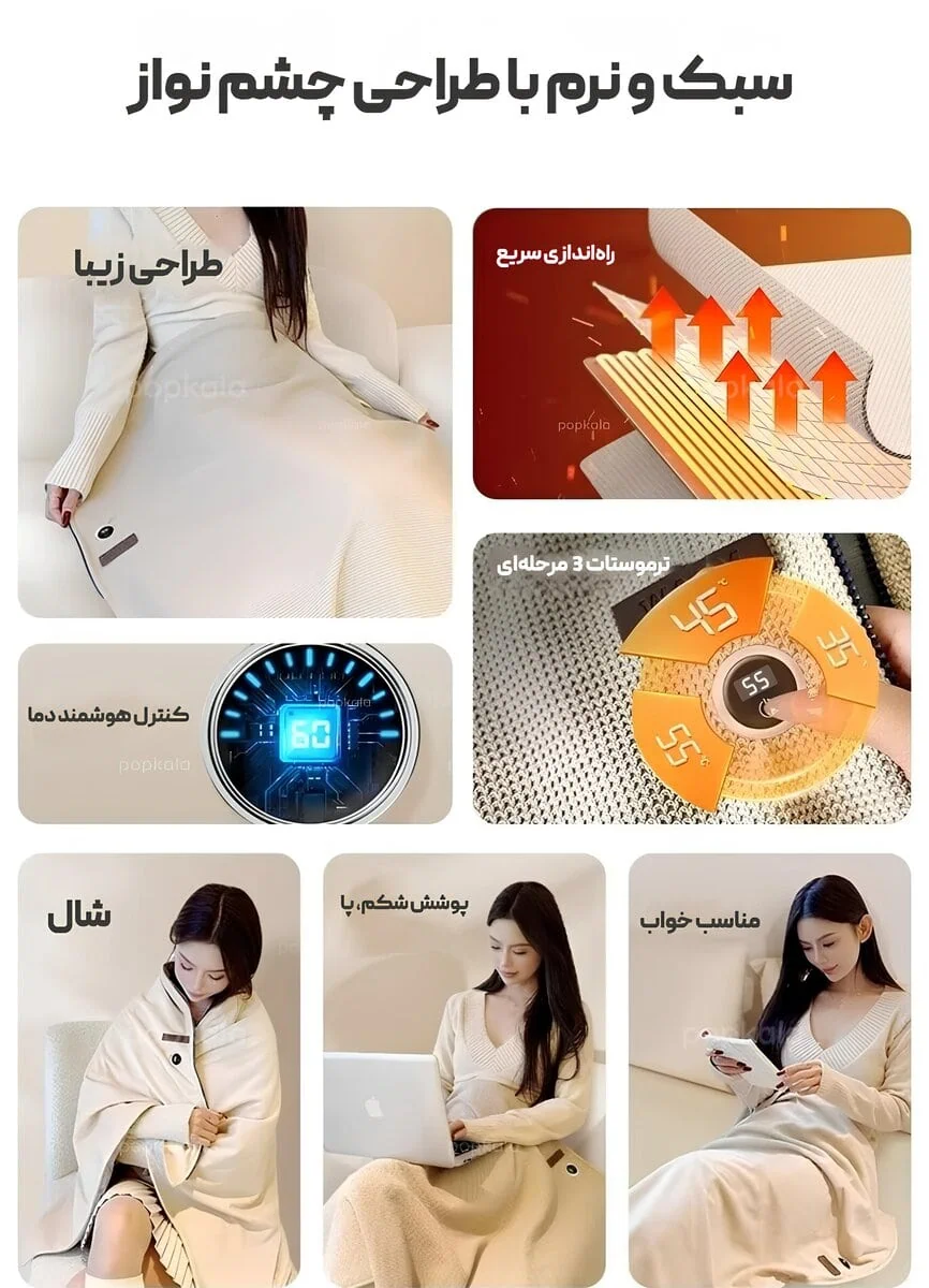 شال حرارتی یک محصول پوشیدنی پیشرفته است که به عنوان شال برقی گرم کن شناخته می شود. این دستگاه با استفاده از تکنولوژی گرافن، الکتریسیته را با بازدهی بالا به گرمای مادون قرمز تبدیل می کند. این شال گرمایشی برقی برخلاف مدل های قدیمی، فاقد باتری داخلی سنگین است و از طریق درگاه USB به پاور بانک متصل می شود. این ویژگی باعث شده تا محصول بسیار سبک، ایمن و قابل حمل باشد. شما می توانید از این شال برای گرم کردن گردن، شانه ها، شکم و حتی پاها استفاده کنید و از مزایای درمانی گرمای یکنواخت آن بهره مند شوید.