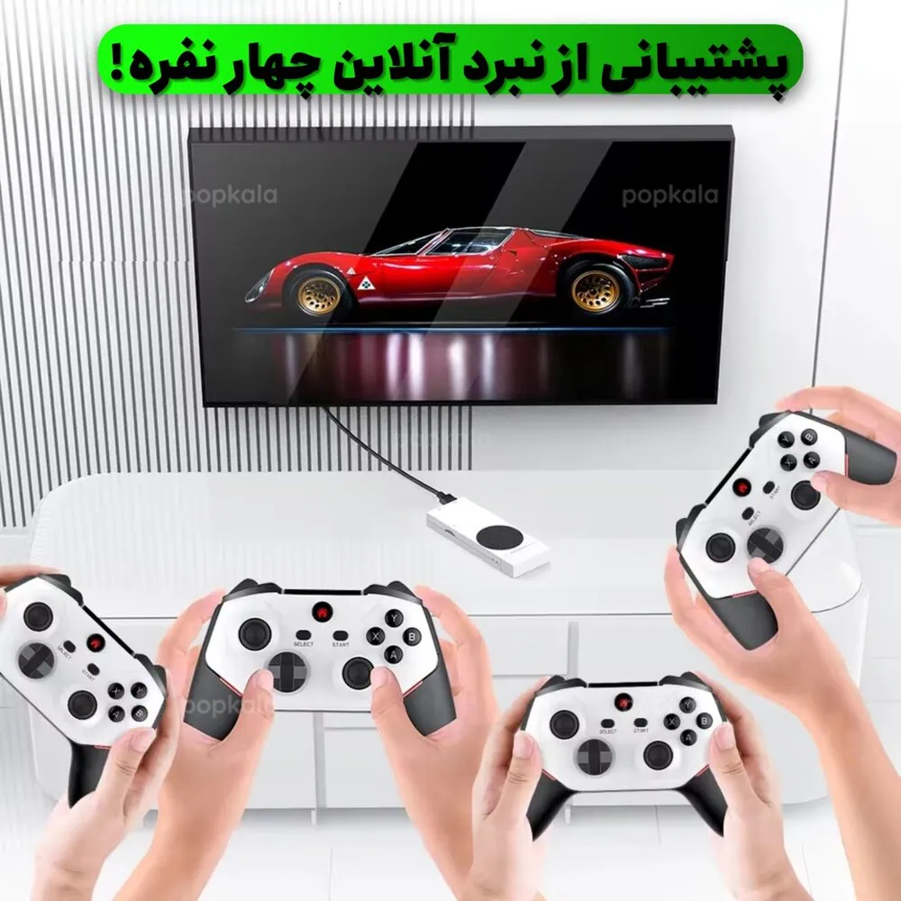این محصول همراه با دو دسته بی سیم ارائه می شود که کاملاً شارژی هستند و از طریق پورت USB-C به راحتی شارژ می شوند. طراحی ارگونومیک دسته ها و راکر سه بعدی حساس باعث می شود تجربه بازی دقیق و لذت بخشی داشته باشید.