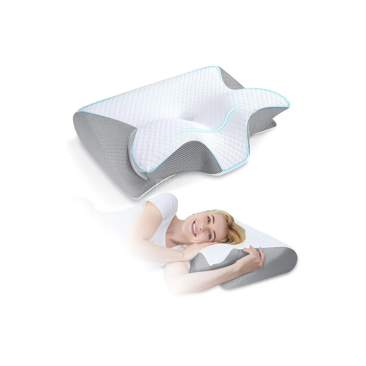 1. طراحی دوگانه 2 در 1: ترکیب بالش گردنی و کانتوری برای حمایت کامل گردن و شانه ها در هر حالت خواب.