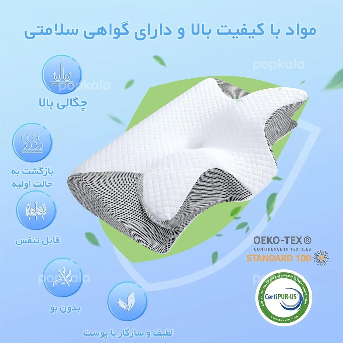 3. قابل استفاده برای تمام حالت های خواب: پشت، پهلو یا شکم، با طراحی شیارهای مخصوص برای راحتی دست ها.