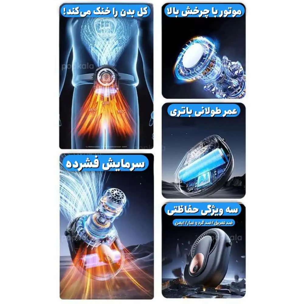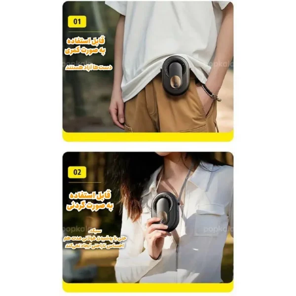 خیر، علاوه بر استفاده کمری، میتوانید آن را به صورت گردنی هم آویزان کنید. - آیا صدای فن زیاد است؟