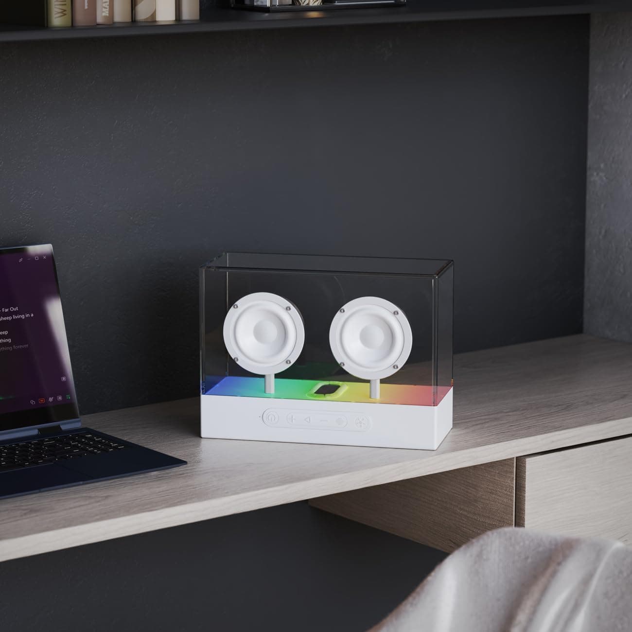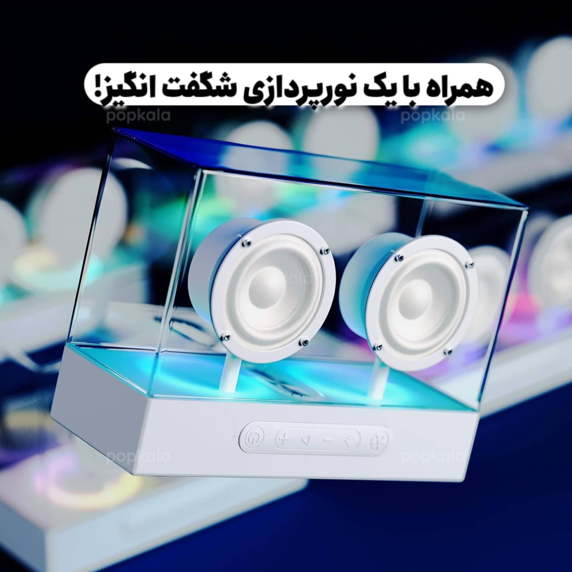 اسپیکر شیشه ای رقص نور دار Budi: طراحی بی نظیر شیشه ای، صدای 30 وات و رقص نور در یک اسپیکر پرتابل! غرق در موسیقی و نور شوید!