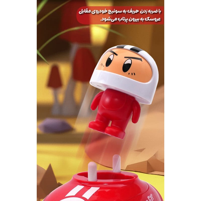 ضربه بزنید و حریف خود را به هوا پرتاب کنید: با یک ضربه محکم به ماشین حریف، عروسک داخل آن را با جلوه های صوتی جذاب به بیرون پرتاب کنید و هیجان مسابقه را دو چندان کنید.